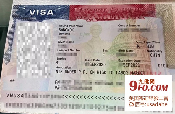 Z女士于2019年10月份由学生转为工作身份,担任一家贷款公司的财务顾问。她用H-1B身份工作3个月后,于今年一月回中国过春节。但不幸的是,新冠病毒在中国爆发、美领馆关闭,导致她无法在美国驻中国使领馆申请H-1B签证。很快,川普总统又公布了针对中国的旅行禁令。于是她于三月份去了泰国准备在美国驻泰国领事馆申请H-1B签证。但是,在泰国准备申请期间,她又遇上了美国驻海外领馆关门,总统公布新的禁令等事件。所以她在泰国呆了半年多,经历数次预约好的面谈被取消,才最终于9月底被领馆面谈。面谈前美国签证找大鹤指导其雇主准备了一份详细的工作证明,说明了她的工作性质符合美国的国家利益,能够帮助美国正在经历经济困难的人们获得合适的贷款渡过新冠病毒的难关,以及雇主很难在疫情下找到合格的人员替代她。因为符合8月12日公告中公布的国家利益豁免情形,Z女士于9月底成功获得了她的第一张H-1B签证,同时领馆还在签证上注明了该签证是“NIE UNDER P.P. ONRISK TO LABOR MARKET”(National Interest Exceptions to Presidential ProclamationsSuspending the Entry of Immigrants and Nonimmigrants Presenting a Risk to theUnited States Labor Market),意即享有因国家利益对外国工作签证持有人入境的禁令的豁免。
