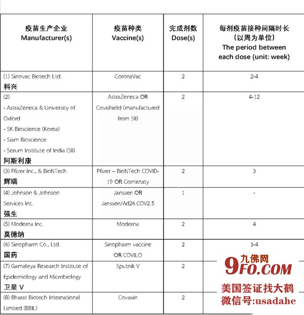 目前泰国卫生部认证的疫苗清单如下: