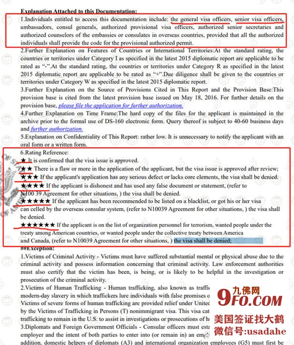 5. 五颗星星还不是最严重的,表示拒签,申请人被推荐列入黑名单,或被海外美国领事系统取消签证,(其他情况参见N10039协议,)签证将被拒签。
