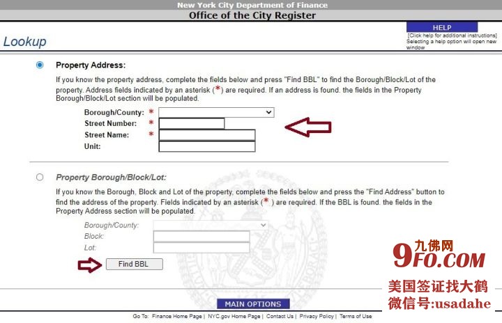 2. 接下来,我们可以在”Property Address”下方输入房屋的详细地址,然后点击“Find BBL”