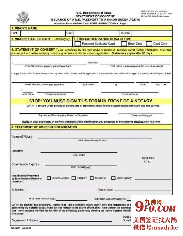 如有一方父母不能一起去美领馆为美宝换护照,就应当提供一份经过公证的授权表DS-3053,有的朋友会问,父母双方都不在美宝身边,可以委托其他亲属陪同更换吗,答案是可以的。同理,美宝父母双方都需要申请办理这份公证书,才能委托他人陪美宝换护照。