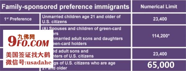 亲属担保移民4个类别每年法定绿卡限额如下(具体每年会有一些差异):