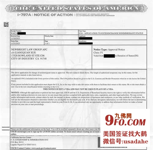 就在上周,客户康小姐找到大鹤,希望在境内将自己调整为学生身份,因为她发现有一所学校与自己从事的专业十分相关,她希望可以在美国进一步研究。她担心申请的时间太长,错过了开学时间,大鹤 当即建议她选择加急处理,没想到效果好的让人惊叹,即使加急移民局也仅承诺了30天内给结果,以大鹤对移民局的了解,29天的时候给出答复已经是很好的结局了,但没想到这次移民局非常给力,仅仅5天就批准了康小姐境内转换学生身份的申请。在这里,大鹤恭喜康小姐可以继续在美国研究自己所心仪的专业!