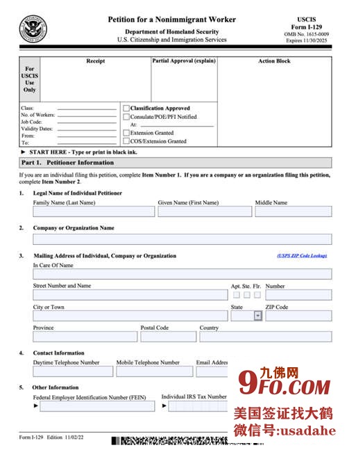 美国签证找大鹤解答:I-129表格共36 页,第 1 页的顶部应仅供 USCIS 使用。