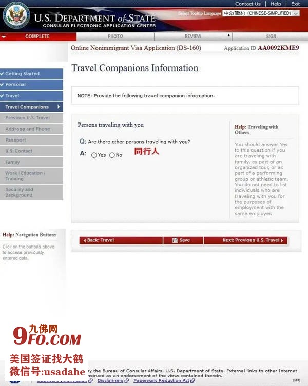如果有同行人,请在这里填写同行人信息。如果没有同行人,这里第一个问题选择No即可。