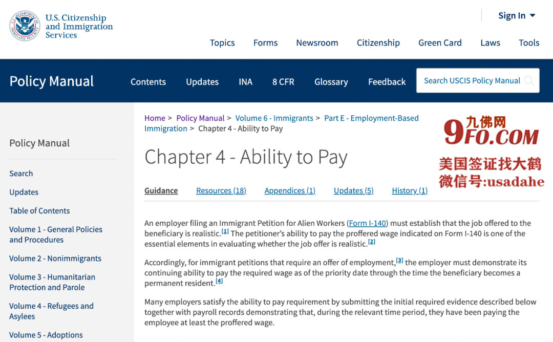 美国职业移民绿卡申请过程中,雇主的角色至关重要。特别是对于EB-1、EB-2和EB-3类别的申请,雇主需要向美国移民局(USCIS)证明他们有能力在该员工的优先日(Priority Date)至最终拿到绿卡的时间内,向员工支付符合标准的薪水。这将直接影响移民签证的审理结果。我是大鹤读音为dahe,今天的话题是:雇主如何证明薪资支付能力?美国EB2/3职业移民绿卡申请必看。下图:美国移民局官网