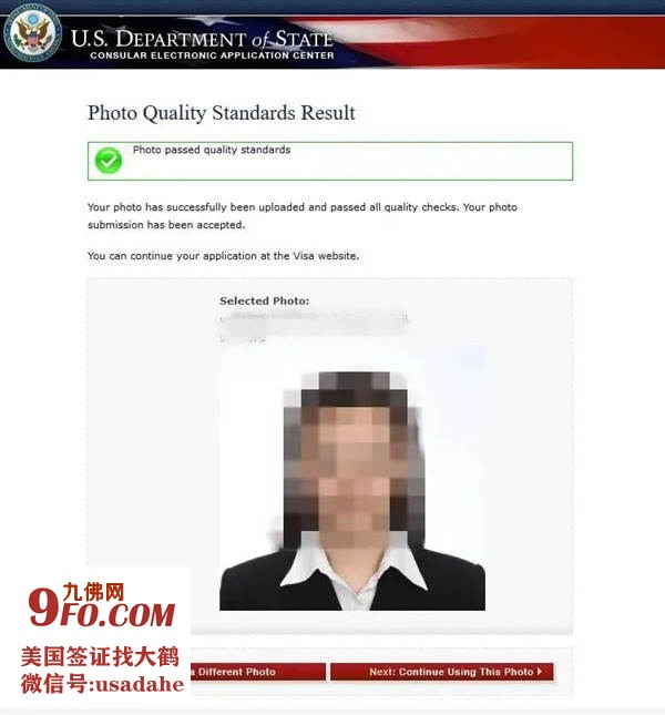 以上的申请美国签证DS160信息都填写完毕后,会要求上传签证照片。选择上传即可,符合标准就会通过验证。