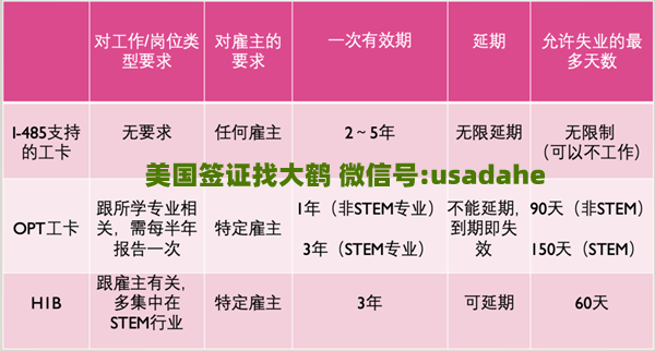 2、OPT工卡:OPT期间的工卡(包括C03B和C类别)限制就比较多了。OPT(Optional Practical Training)属于实习,所从事的行业/岗位需要跟专业相关,每半年要向SEVP汇报。如果期间失业超过90天(非STEM专业)/150天(STEM专业),就会开始积累非法居留(unlawful presence)的天数。也就是说,该卡持有人在美的合法身份需要用工作来维持,失业超过一定天数就需要尽快离境。另外,OPT的工卡过期就过期了,无法延长。这时候如果没有其他合法身份维持,持有人也必须在60天内离境。